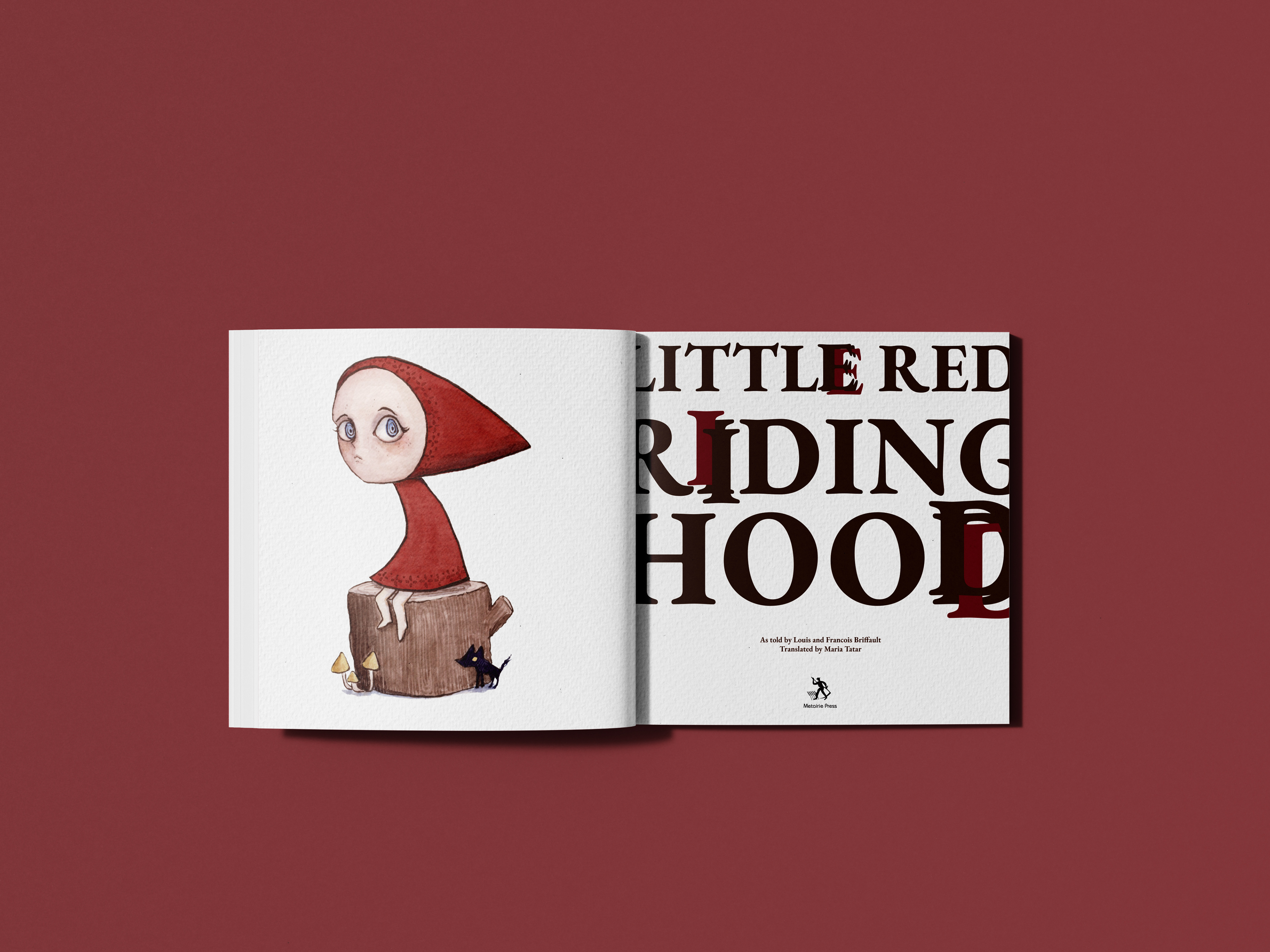 Watercolor with type experiment for Little Red Riding Hood Frontispiece.