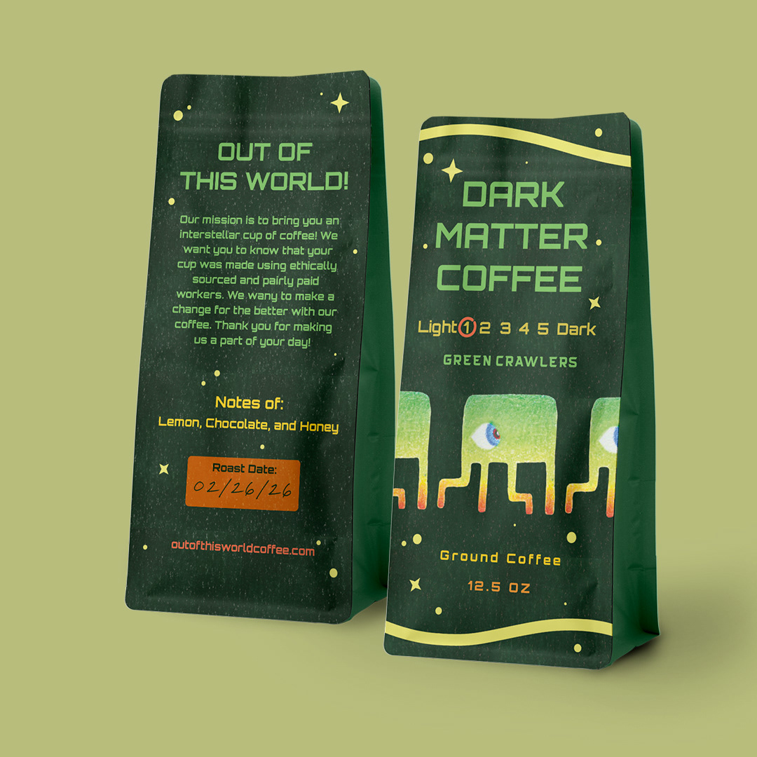 Personal illustrations used to make a coffee brand called Dark Matter Coffee